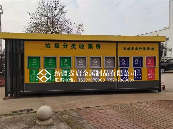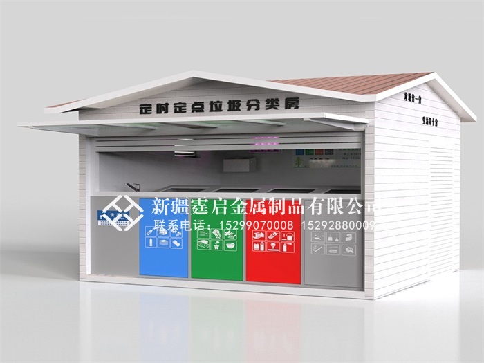 【环保垃圾房】 1.便利性:产品可以根据地形位置定做,因地制宜,可大可小,只要有块空地就可放置; 2.可移动性:因为我们的产品是整个钢架焊接成型,牢固性能佳,可以随时移动到你所需要的地点。不需要另外做土建等工程; 3.美观性:产品丰富,可定制各种大小,款式,颜色,材质。一切只为彰显您的个性及与周围环境的和谐; 4.设计合理:大程度减少环卫员工的劳动强度,提高垃圾车装卸的方便与快捷; 产品说明: 1、镀锌钢架龙骨整体焊接成型,保证房体结构的牢固性; 2、外墙材料均选用外墙高强度PVC挂板,不锈钢,金属保温板,烤漆镀锌板等抗腐蚀材料; 3、内墙为1.5mm镀锌板,有效防止垃圾桶,手推车等对墙体的撞击,并很好的防止垃圾对墙体的腐蚀; 4、顶部为人字形结构,杜绝漏水的隐患; 5、地板为花纹钢板或大理石贴面,并配备排水处理,用水一冲,轻轻松松; 【垃圾分类亭】 1、表面颜色高温静电喷塑处理、氟碳漆。大型烤箱等设备,具有极强抗腐蚀性; 2、顶棚可选择:镀锌钢板、耐力板、阳光板、夹胶钢化玻璃、钢化玻璃,阳光板、树脂瓦等; 3、立柱可选择:镀锌管材、不锈钢管材、铝型材(外观精致,表面平整)。均采用国际标准; 4、箱体可选择:镀锌钢板、不锈钢板折边。门框采用镀锌钢板、不锈钢板、铝合金型材等; 5、视窗:钢化玻璃、PC耐力板等。均采用国际标准; 6、可选配件:太阳能供电 、LED显示屏、滚动系统、语音播报、LED光源等; 7、可按照客户需求的材质、尺寸、效果图进行定制生产; 8、激光切割材料、精密度高。钣金折弯,无缝焊接等。 9、产品采用拼接组装式设计,运输、安装简单快捷。 注:所有产品均可加急订制生产,如:功能要求、颜色要求、材料要求、尺寸要求、配置等;