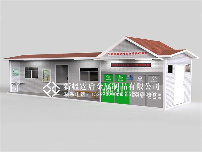 【环保垃圾房】 1.便利性:产品可以根据地形位置定做,因地制宜,可大可小,只要有块空地就可放置; 2.可移动性:因为我们的产品是整个钢架焊接成型,牢固性能佳,可以随时移动到你所需要的地点。不需要另外做土建等工程; 3.美观性:产品丰富,可定制各种大小,款式,颜色,材质。一切只为彰显您的个性及与周围环境的和谐; 4.设计合理:大程度减少环卫员工的劳动强度,提高垃圾车装卸的方便与快捷; 产品说明: 1、镀锌钢架龙骨整体焊接成型,保证房体结构的牢固性; 2、外墙材料均选用外墙高强度PVC挂板,不锈钢,金属保温板,烤漆镀锌板等抗腐蚀材料; 3、内墙为1.5mm镀锌板,有效防止垃圾桶,手推车等对墙体的撞击,并很好的防止垃圾对墙体的腐蚀; 4、顶部为人字形结构,杜绝漏水的隐患; 5、地板为花纹钢板或大理石贴面,并配备排水处理,用水一冲,轻轻松松; 【垃圾分类亭】 1、表面颜色高温静电喷塑处理、氟碳漆。大型烤箱等设备,具有极强抗腐蚀性; 2、顶棚可选择:镀锌钢板、耐力板、阳光板、夹胶钢化玻璃、钢化玻璃,阳光板、树脂瓦等; 3、立柱可选择:镀锌管材、不锈钢管材、铝型材(外观精致,表面平整)。均采用国际标准; 4、箱体可选择:镀锌钢板、不锈钢板折边。门框采用镀锌钢板、不锈钢板、铝合金型材等; 5、视窗:钢化玻璃、PC耐力板等。均采用国际标准; 6、可选配件:太阳能供电 、LED显示屏、滚动系统、语音播报、LED光源等; 7、可按照客户需求的材质、尺寸、效果图进行定制生产; 8、激光切割材料、精密度高。钣金折弯,无缝焊接等。 9、产品采用拼接组装式设计,运输、安装简单快捷。 注:所有产品均可加急订制生产,如:功能要求、颜色要求、材料要求、尺寸要求、配置等;